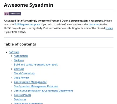 Список инструментов и ресурсов для сисадминов с открытым исходным кодом https://github.com/awesome-foss/awesome-sysadmin @sysadmin1