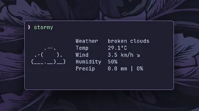 Stormy это минималистичный CLI-инструмент для отображения погоды, оформленный в стиле neofetch, написанный на Go. Он выводит информацию о погоде прямо в терминале в компактном и визуально приятном фо