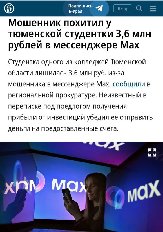 ☹️СМИ пишут о массовых случаях мошенничества в мессенджере Коммерсант: Всего на прошлой неделе в результате действий телефонных и интернет-мошенников пострадали 55 жителей Тюменской области. Они пот