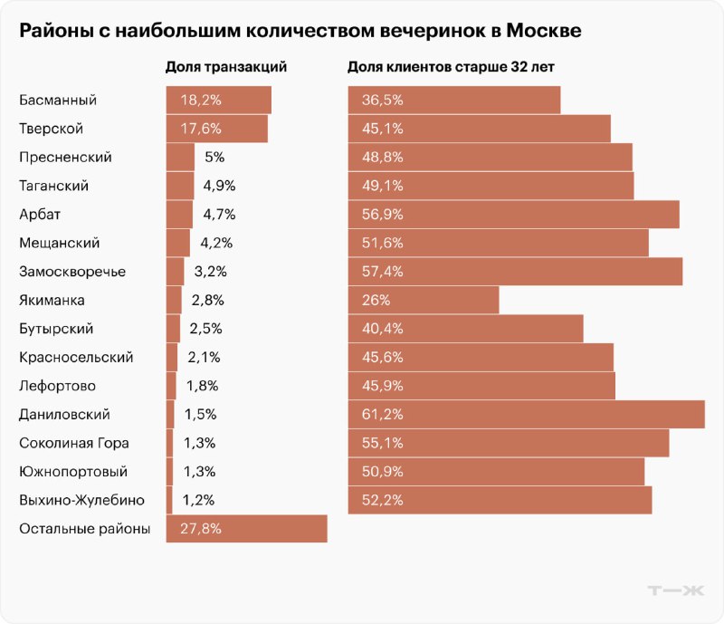 Посчитали обезличенные данные о расходах клиентов Т-Банка в барах, клубах и ресторанах Москвы за год — и сделали выводы: 🟪На промежутки с 19:00 до 05:00 пятницы и субботы приходится 38% всех транз