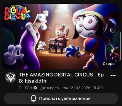 📌Новый пост от GLITCH ▶ Дата выхода 8 серии — в ночь с 20 на 21 марта 🤡 Цирковые Сливы