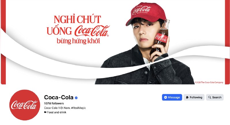 🖇 Аккаунт Coca-Cola Vietnam обновили свою страницу в Facebook, добавив фотографию Тэхёна в шапку профиля! На данный момент у Тэхёна рекламные кампании с Coca-Cola проходят уже в четырёх странах: Кор