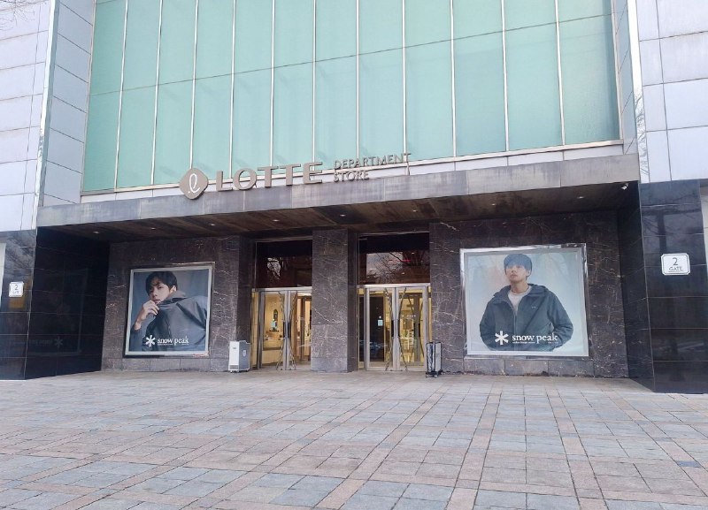 🖇 Рекламные плакаты с Тэхёном для Snow Peak у главного входа в LOTTE Department Store в Инчхоне! cr. BTSVChartData @taehyung_gallery