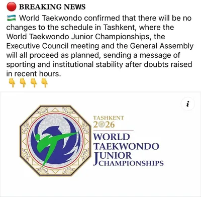 ⚡️⚡️⚡️⚡️ Первенство Мира по тхэквондо среди юниоров в Ташкенте пройдет без изменений с 12 по 17 апреля ✅ Раннее Всемирная Федерация информировала национальные Федерации о возможном переносе Первенст