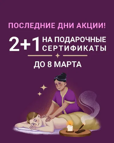 Не ждите звонка — приходите в Тайрай!💜 До 8 марта действует акция 2+1 на подарочные сертификаты. Успейте подарить радость своей любимой! 🎁 Ознакомиться с условиями акции: 💆♀️ подробнее об акции