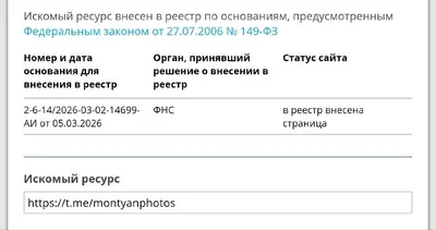⚡️Телеграм каналы внесённой в списки экстремистов и террористов #Монтян включены в перечень запрещённых Роскомнадзором и будут заблокированы. Телеграм каналы, которые будут распространять информацию