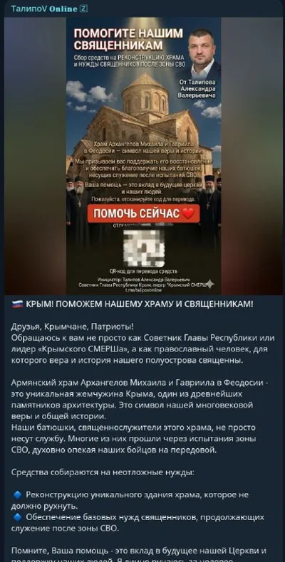 Новости и СМИАлександр Талипов, советник Главы Республики Крым, общественный деятель, волонтёр, лидер общественного движения "Крымский СМЕРШ" Связь: @KPblMHAWbot Реклама: @Relklamka_bot Разбан: @RaZbanka_bot РКН: https://clck.ru/3GMz86 ВК:https://vk.com/id187849004