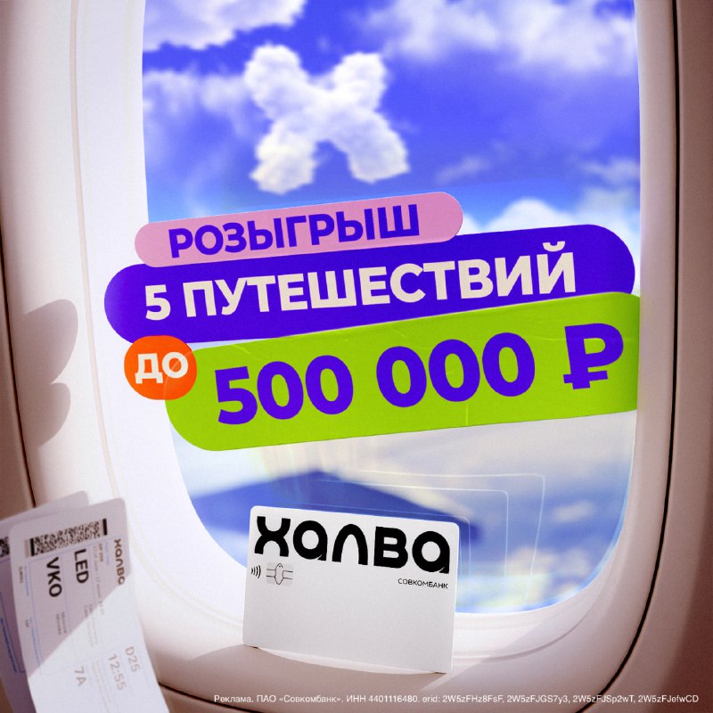 Подарим путешествие мечты пяти счастливчикам 🏖 Главный приз – сертификат на 500 000 Р 🎁 Как участвовать: 1. Активируйте акцию «На высоте чувств» 2. Покупайте у партнёров Халвы на сумму от 3 000 ₽