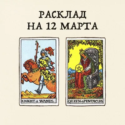 12 марта Карты дня: Рыцарь Жезлов и Королева Пентаклей Огонь встречается с землей, и это прекрасное союзничество! Оно может проявляться как связь между вами и другим человеком или как взаимодействие