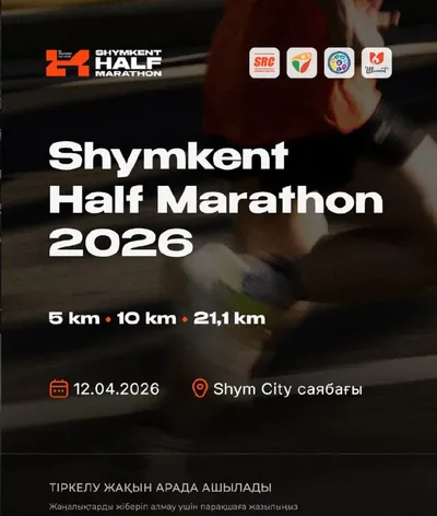 Shymkent Half Marathon 2026 🏃♂️🔥 12.04.2026 Дистанции: • 5 км — первый шаг в мир бега. • 10 км — следующий уровень силы и выносливости. • 21.1 км — выбор настоящих бегунов и настоящий вызов себе.