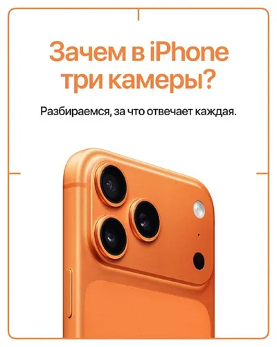 Зачем в iPhone три камеры? 📸 Каждая камера в iPhone выполняет свою уникальную роль, и они работают вместе, чтобы ваши снимки и видео были ещё круче! Рассказываем, какая камера за что отвечает и ка