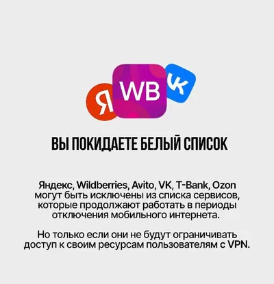 ⚠️Вы покидаете «белый» список. Сервисы обяжут ограничивать доступ пользователям с включенным VPN. Как сообщает Коммерсант — Минцифры хочет ограничить использование VPN, но при этом не вводить ответст
