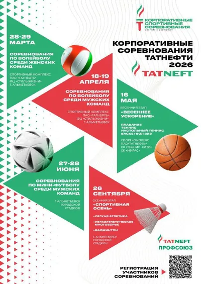 🏆Корпоративные спортивные соревнования Татнефти — 2026 Публикуем все даты и этапы спортивного сезона 2026 года. Сохраняйте афишу, чтобы не пропустить соревнования и поддержать команды! 🗓28–29 мар