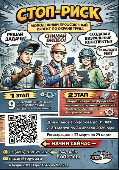 ⚡️Молодежь Татнефть Профсоюза! Нефтегазстройпрофсоюз России приглашает молодых профактивистов принять участие в молодежном проекте по охране труда «Стоп-риск» Проект направлен на формирование культ