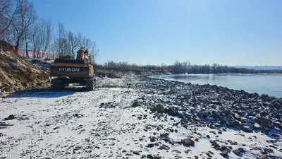 На острове Татышев на берегу Енисея продолжаются работы по укреплению берега Подрядчик уже выполнил «укрепительную призму», проще говоря, отсыпал нижний слой камня. На это ушло более 8 тысяч кубомет