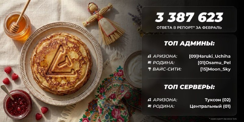 🛠 В феврале администрация Arizona RP обработала 2 700 766 репортов. В среднем за день администрация проекта рассматривала около 96 000 обращений. Топ-3 самых активных администраторов месяца: 🥇 [Yu