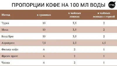 Пропорции кофе: сколько вешать в ложках и граммах Нарушение рецепта для разных методов приготовления кофе влияют на вкус и аромат напитка. Составили шпаргалку в ложках и граммах, чтобы ваша чашка все