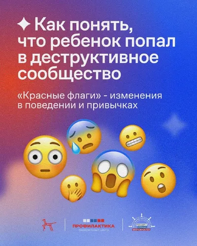 Как распознать, что ребенок попал под влияние опасных интернет-сообществ? Федеральный центр «Профилактика» подготовил материал, благодаря которому вы сможете вовремя заметить тревожные сигналы. В кар