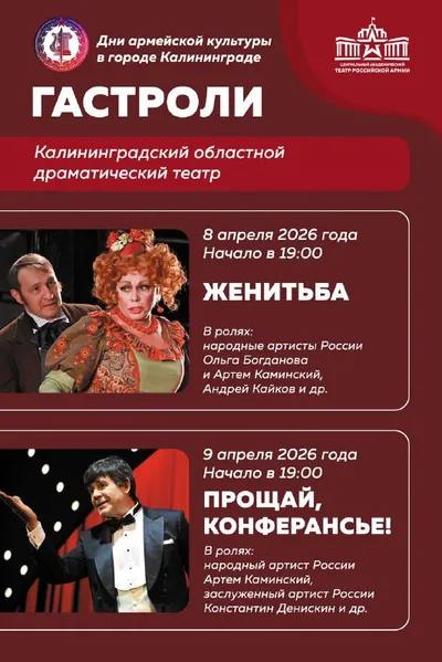 ⭐️ Гастроли Театра Российской Армии в Калининграде. Театр Российской Армии отправляется в Калининград, в котором мы не были с 2008 года! 🔗В апреле в рамках «Дней армейской культуры» артисты Театра