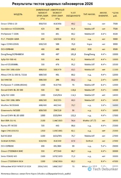 Брендовые ударные гайковерты 400-2100 Н*м. Таблица с тестами Тема тестов ударных гайковертов – непростая. Большая мощность в сочетании с ударным типом нагрузки не позволяют подступиться к ним со стан