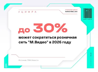 «М.Видео» может сократить розничную сеть почти на треть в 2026 году. ▶️По словам Евгении Хакбердиевой, регионального директора департамента торговой недвижимости NF Group, уже наблюдаются конкретные