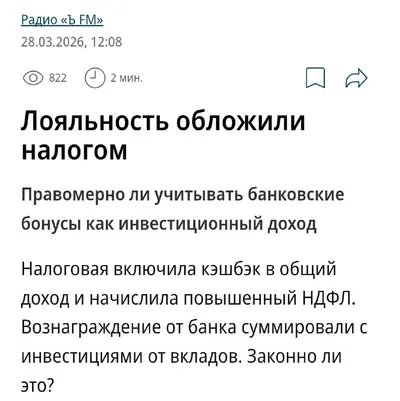 ⚡️ Кэшбек теперь облагают налогом ФНС признала банковский кэшбек инвестиционным доходом и начислила налог в размере 15%. Россиянину, получившему кэшбек, пришлось заплатить НДФЛ с бонуса в 480 тысяч р