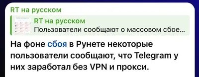 ⚡️ Telegram стал работать без VPN во время сбоя в Рунете После сбоя в Рунете Telegram начал загружаться без VPN и прокси — так сообщают некоторые пользователи. @technosplit