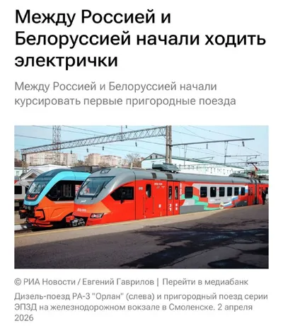 До Беларуси на электричке Между Россией и Беларусью начали курсировать пригородные поезда. Первый отправился из Смоленска в Оршу. Также поезда будут идти по маршруту Смоленск-Витебск. Составы начн