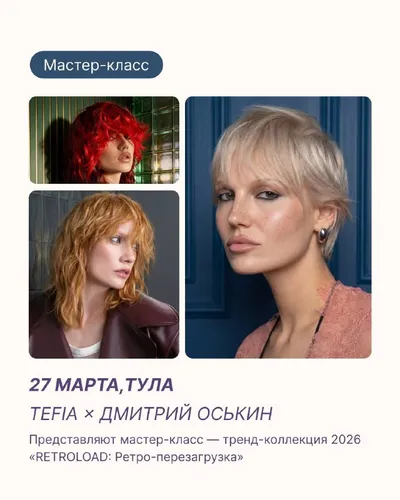 Тула, готовьтесь 🔥 27 марта в 12:00 TEFIA × Дмитрий Оськин представляют мастер-класс трендовую коллекцию 2026 "Ретро-перезагрузка"! Это не просто обучение - это про вдохновение, свободу и новый вз