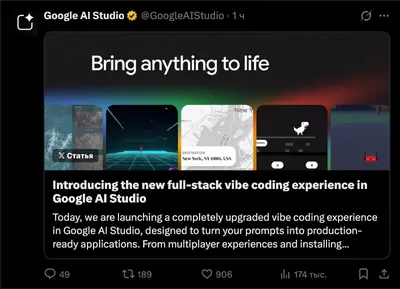 Теперь в Google AI Studio можно вайб-кодить full-stack приложения Поддержка Firebase и аутентификации, Antigravity Agent и многое другое