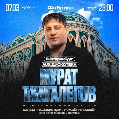 «Едем, едем в соседнее село на дискотеку!» 🔥 Мурат Тхагалегов впервые в Екатеринбурге, чтобы лично исполнить «Калым», «Душу Бандита» и все главные хиты, под которые невозможно стоять на месте. Макси
