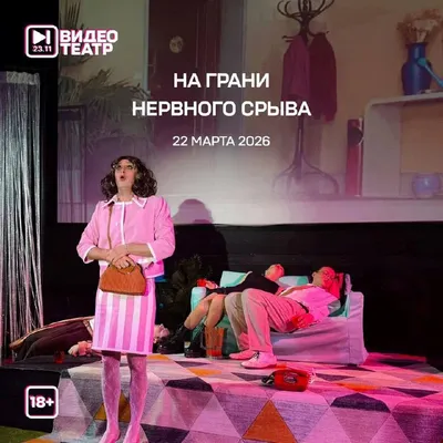 Иммерсивный киноспектакль по мотивам культового фильма Педро Альмодовара «НА ГРАНИ НЕРВНОГО СРЫВА» Сюжет: Главную героиню Пепу бросает любовник Иван. Пытаясь разобраться в случившемся, она оказываетс
