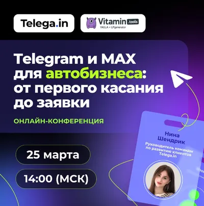Telegram и MAX для автобизнеса: что работает в 2026 и как выстроить стратегию 🚗 🗓 25 марта | 🕒 14:00 (МСК) В автобизнесе редко покупают с первого касания: цикл сделки длинный, а доверие к бренду