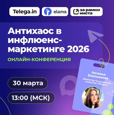 Антихаос в инфлюенс-маркетинге 2026: как получать стабильный результат в Telegram и MАХ ⚡ 🗓 30 марта | 🕒 13:00 (МСК) 2026 усложняет правила игры: меняются платформы, конкуренция за внимание растёт