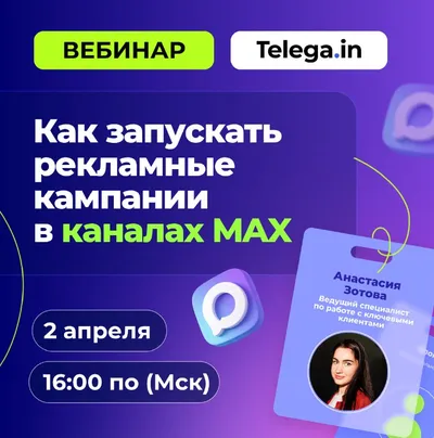 📲 Как запускать рекламу в MAX через Telega.in: каналы, аналитика и отчёты 🗓 2 апреля | 🕒 16:00 (МСК) MAX быстро становится новым каналом продвижения — всё больше брендов заходят туда в поиске нов