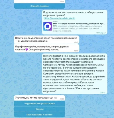 В MAX начали блокировать каналы без объяснения причин — восстановить при этом каналы невозможно. Уже поудаляли некоторые каналы, которые дублировали свой контент из телеграм — где в этих каналах было
