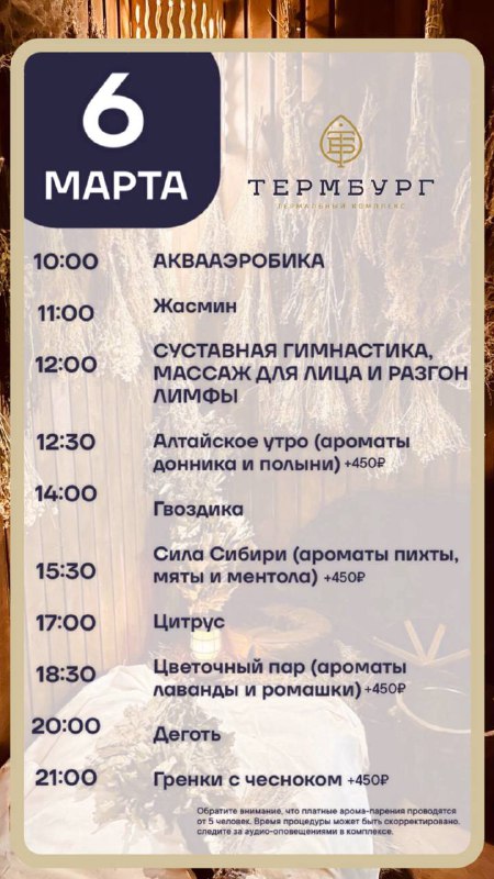 🍃 Расписание мероприятий на сегодня. #Термбург #Баняпечатники #Термы #Расписание #Банныйкомплекс