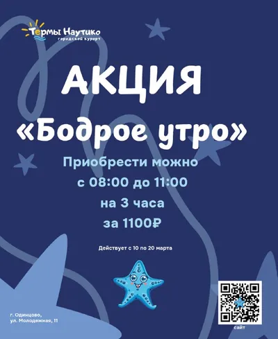 Дорогие посетители! С 10.03 по 20.03 мы запускаем акцию «Бодрое утро»! Действует только в будние дни! Приобрести можно с 08:00 до 11:00 на 3 часа за 1100₽ 🫶🏼 Ждём вас! ❤️