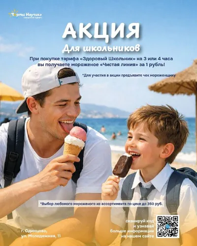 🍦 АКЦИЯ для школьников! В «Термы Наутико» — городской курорт в г. Одинцово — действует специальное предложение 🎉 При покупке тарифа «Здоровый Школьник» на 3, 4 часа или безлимит вы получаете мороже
