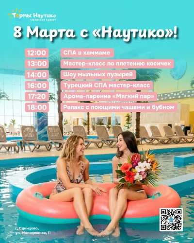 🌸 Праздник красоты и релакса в Термах «Наутико» — к 8 Марта! 🌸 Дорогие гости, приглашаем вас провести этот весенний день в атмосфере тепла, отдыха и приятных впечатлений в акватермальном комплексе