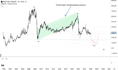 #imoex Любопытную вещь подглядел. Это индекс с поправкой на инфляцию. График говорит сам за себя. Учитывая наличие зигзага в росте, видно что идет цикл коррекции и в определенный момент минимум (w) б