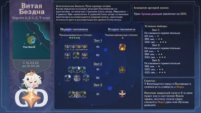 😵💫 Мини-гайд на 9-12 этажи последнего обновления Бездны луна V. Благословение Бездны: Луна суровых ветров ✨ Всем удачи в покорении новых глубин! #бездна Тейватские Гайды | Genshin Impact