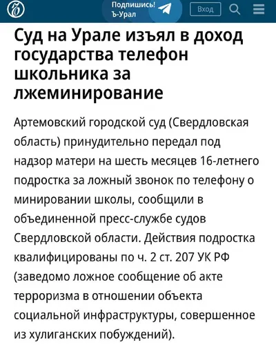 ❗️ Сообщил о "бомбе" в школе за 829 рублей: свердловского подростка обязали заплатить 12 тысяч и отобрали телефон Суд наказал 16-летнего жителя Свердловской области за ложное сообщение о минировании