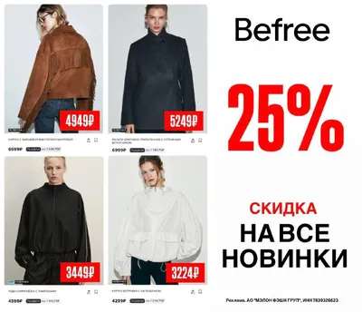 Девочки, забирайте стильные новинки на весну в Befree: ➕ скидка на них по промокоду: XFB04-bf — 25% на все новинки (товары со знаком Новинка) Куртка с бахромой Пальто драповое Худи-олимпийка Кур