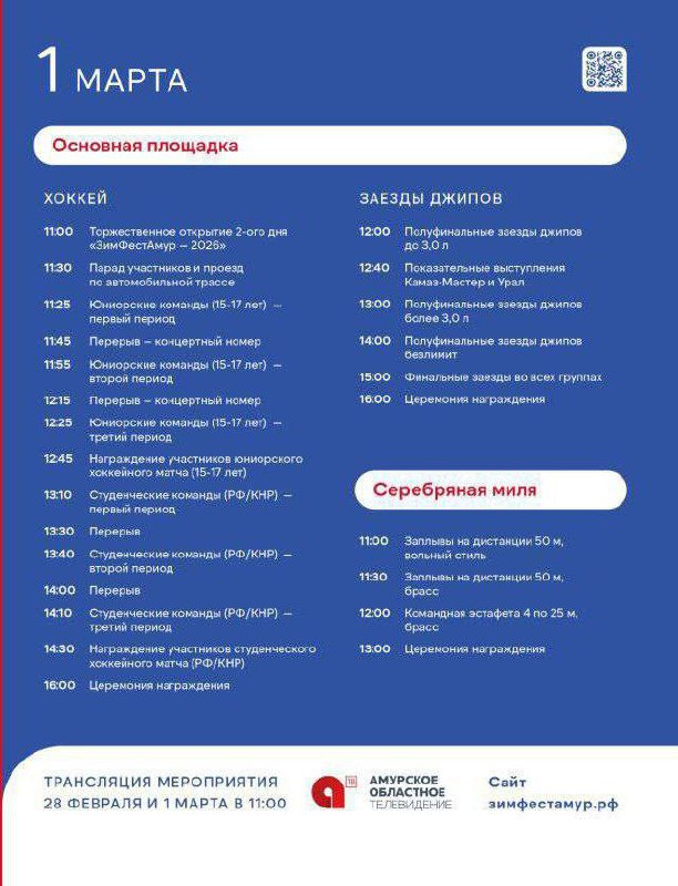 Расписание второго дня «ЗимФестАмур». 😀- Подписывайтесь на 28News | Присылайте новость 🇷🇺 28News в MAX - подпишитесь, чтобы не потерять