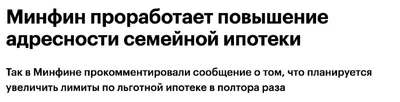 Минфин планирует увеличить лимиты по Семейной ипотеке до 18 млн рублей Или очередная суета с изменениями условий На связи @agentkess Спасибо за все теплые слова поддержки в адрес Ильи. Сейчас мы, к