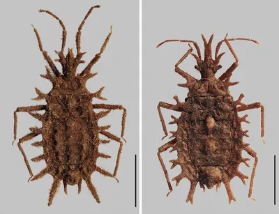 Найди клопнадцать отличий! 😁 Справа — клоп-подкорник Chlonocoris dolinorum из Мадагаскара, слева — подкорник нового рода и вида Neochlonocoris sepicus из Папуа – Новой Гвинеи. Новичок не похож ни на