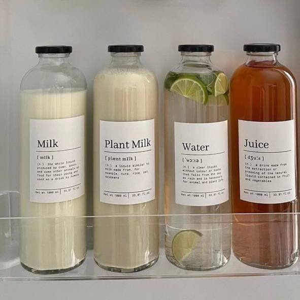Эстетично храним напитки в холодильнике🌸 Стильные бутылки - и порядок, и красота в каждой полке. Для молока Для растительного молока Для воды Для сока