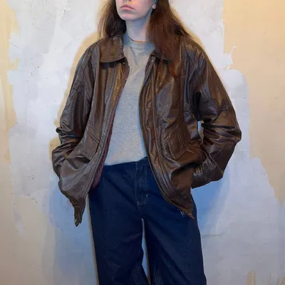 Винтажный кожаный бомбер коричневый Размер xl, состояние отличное ПРОДАНО