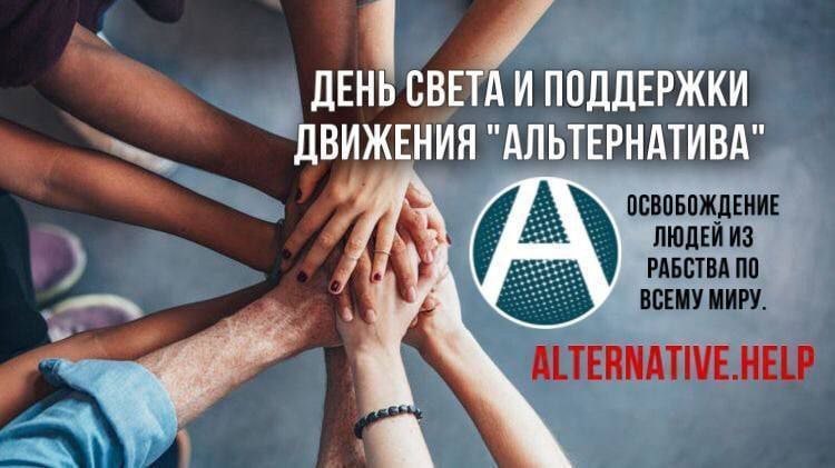 Сегодня удивительный день — день света и поддержки движения «Альтернатива». «Альтернатива» — это организация, которая борется с современным рабством, освобождает людей по России и миру из всех форм р